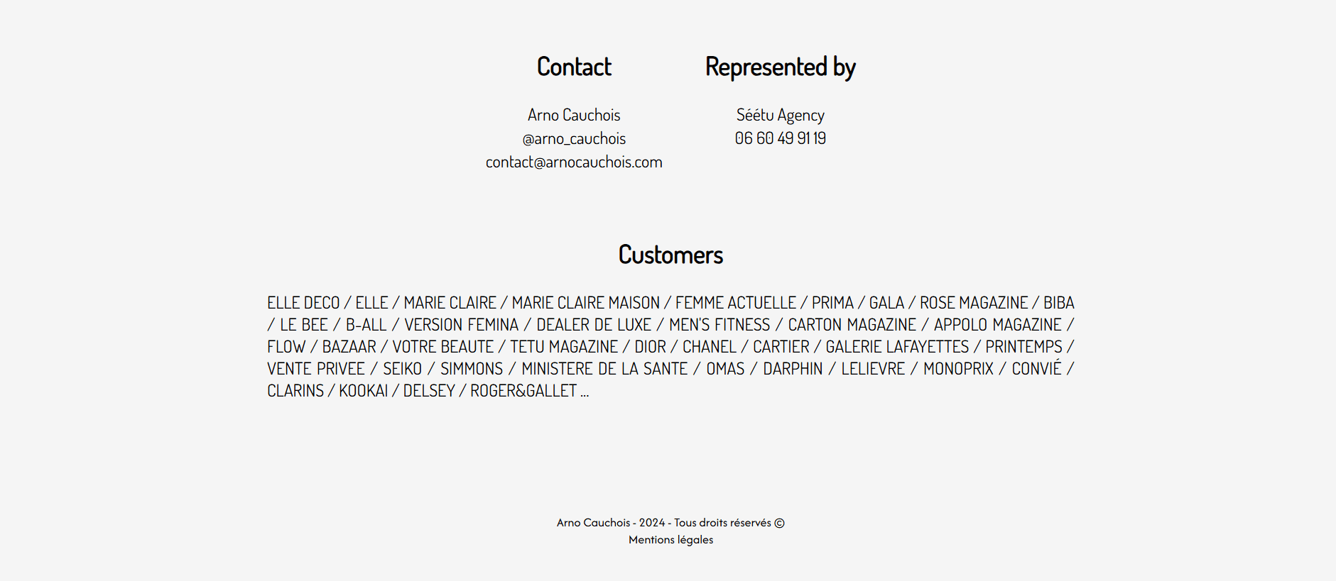 The new website balances visual impact and efficiency, ensuring Arno’s work takes center stage while maintaining fast loading times and an intuitive navigation experience across all devices. A deep SEO optimization strategy was implemented to boost organic reach and search rankings. The site also adapts to the user's system preferences, seamlessly switching between light and dark modes for an optimal browsing experience.